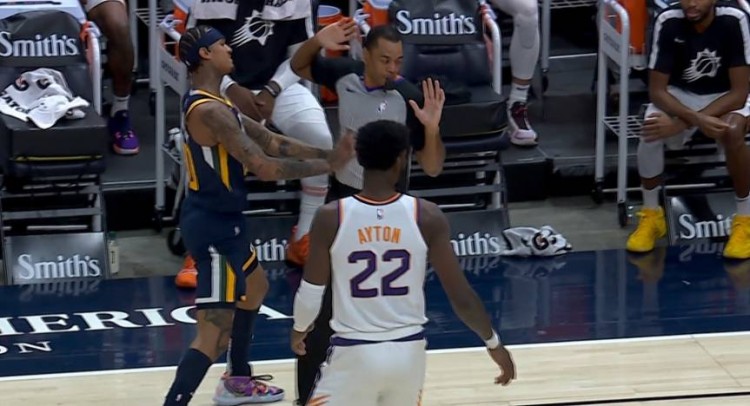 1月1日讯 爵士队今日主场对阵太阳,本场比赛第二节,比赛发生了搞笑的一幕。