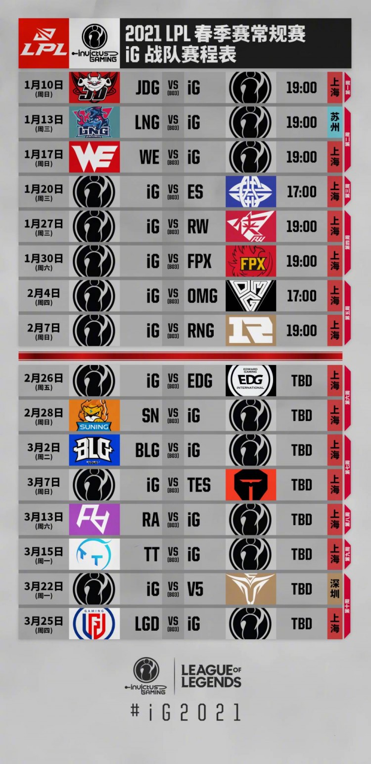 2021LPL春季赛于9日正式打响,10日iG将进行首场比赛,新的赛季,新的挑战,加油!