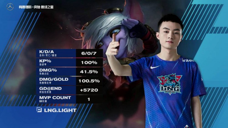 【6:55】双方集结多人在下河道开战,LNG阵型出色先行击杀烬,随后小炮连跳收下双杀,LNG完成0换4。