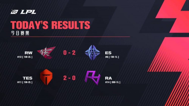 1月15日讯 今日LPL春季赛W2D5的比赛已经全部结束,在今日的比赛中,ES以2-0横扫RW,TES则以2-0击败RA终结连败。