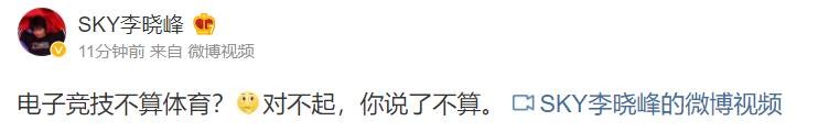 1月15日讯 此前,在第五届中国体育产业嘉年华中,爱奇艺体育CEO喻凌霄、盛力世家创始人 CEO李胜宣称坚决反对电竞是体育,今日,首个电竞项目个人世界冠军获得者SKY李晓峰作出回应:电子竞技是不是体育?对不起,你说了不算。