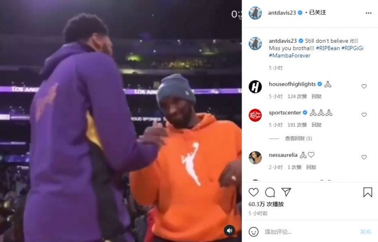 浓眉:仍然不相信!!!想你了,兄弟!!!#RIPBean #RIPGiGi #MambaForever