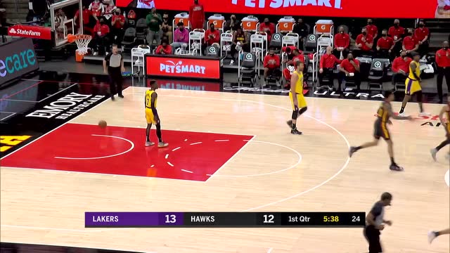 首节开局湖人抓住了老鹰慢热的机会率先抢占先机,施罗德和戴维斯相继油漆区拿分为球队取得9-2的开局领先,老鹰虽然凭借着拉佩拉的扣篮拿下本场第一分,但球队随后的4分钟里都没能再得分,直到许尔特和科林斯的两记三分进球才打破得分荒,不过找到感觉后的他们迅速追上比分,科林斯接连上演扣篮为老鹰打开局面,随后许尔特外线再中三分。湖人方面状态同样出彩,替补上场的哈雷尔、库兹马和卡鲁索组成战队接连拿分,隆多面对旧主命中三分一度帮助老鹰追平比分,不过詹姆斯最后制造三分犯规三罚全中,湖人28-25领先老鹰结束第一节。