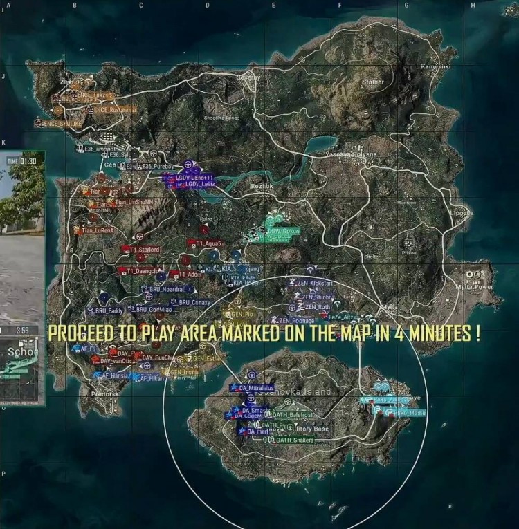 DXG剩下两人,选择从圈西部上岸。