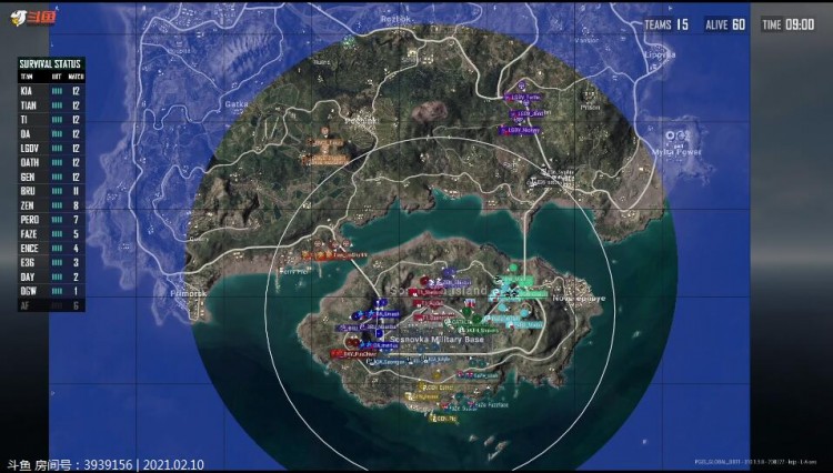 另一边,DA团灭了BRU,占据了圈内西边。