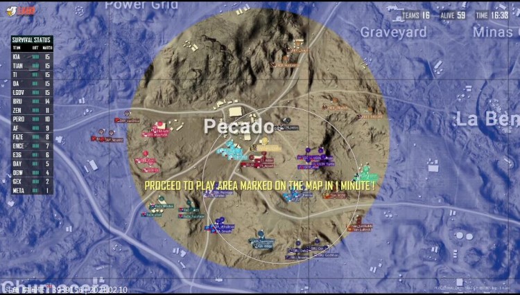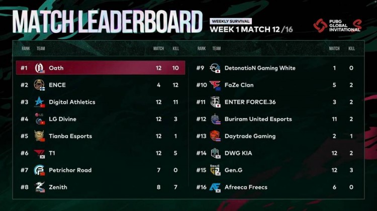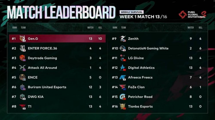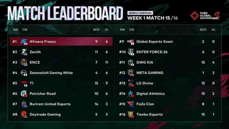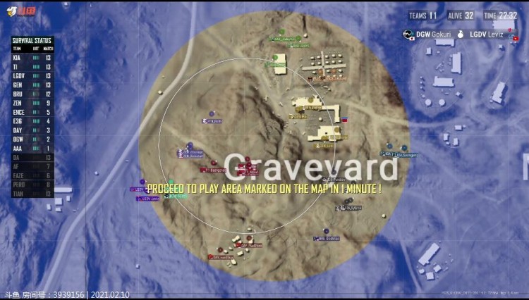 圈西南部多队聚集,LGDV遭到围堵,蓝圈赶来LGDV选择进圈,遭到DGW架枪,LGDV遭到淘汰,DGW也被T1收掉,持续混战,T1成最后胜者。