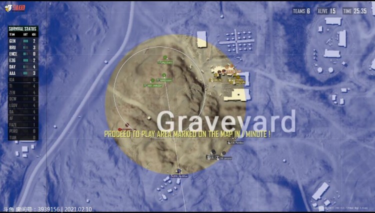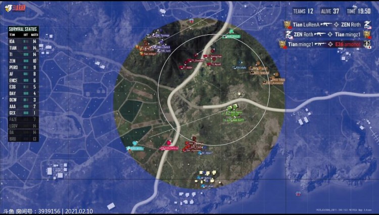 Tianba选择摩托北部进圈,被GEN、LGDV交火击倒两人,ZEN近点冲脸淘汰Tianba。