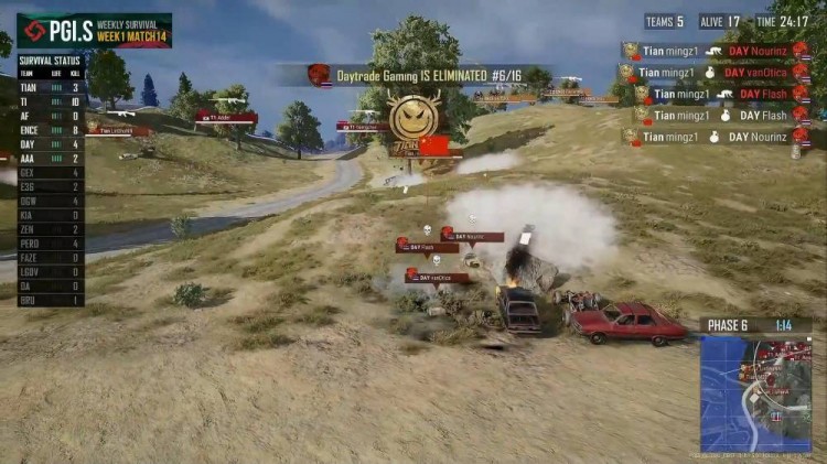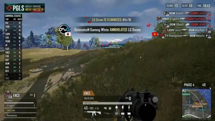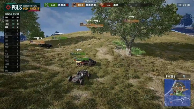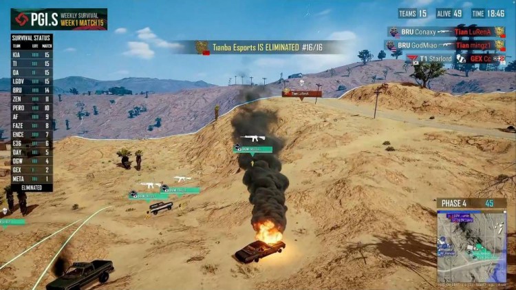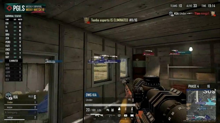 DGW突脸tianba,几颗手雷击杀Tianba两人,远点BRU枪线骚扰,Tianba惨遭淘汰。