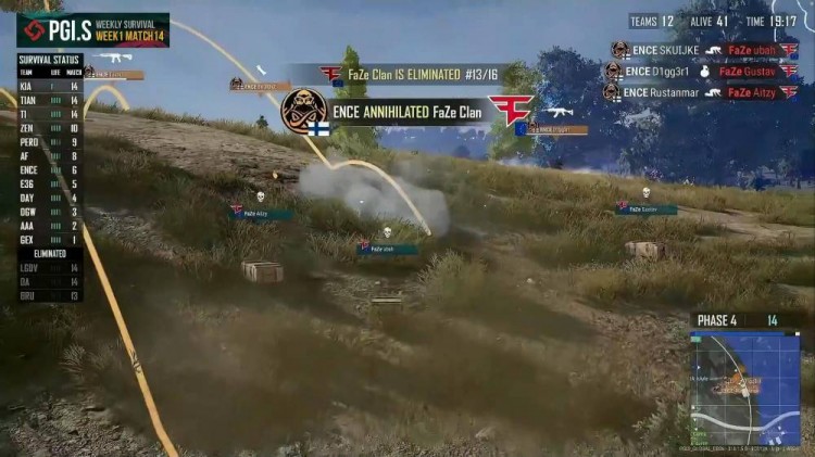 FAZE和LGDV、T1、E36、ENCE同时进圈,ENCE被打掉两人;