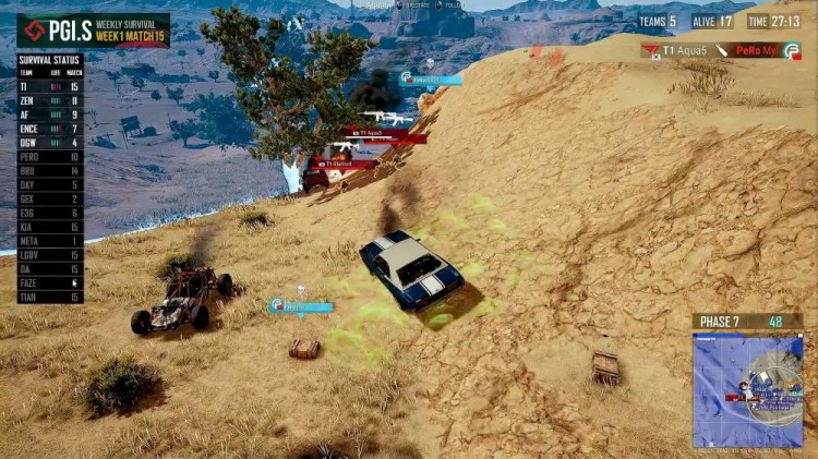 PeRo只剩两人开车进圈,到了一个反斜,反复动车,配合不好,被T1远点淘汰。