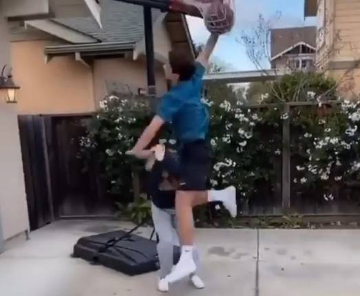 妹妹持球上篮打进后撞开哥哥“挑衅”,谁知后者在下一个回合直接将妹妹扣翻在地并给视频配文:“我妹以为她很厉害,于是我上演了复仇。”