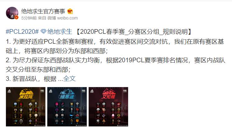 1. 为更好适应PCL全新赛制赛程,有效促进赛区间交流对抗,我们在原有赛区基础上,将赛区内部划分为东部和西部;