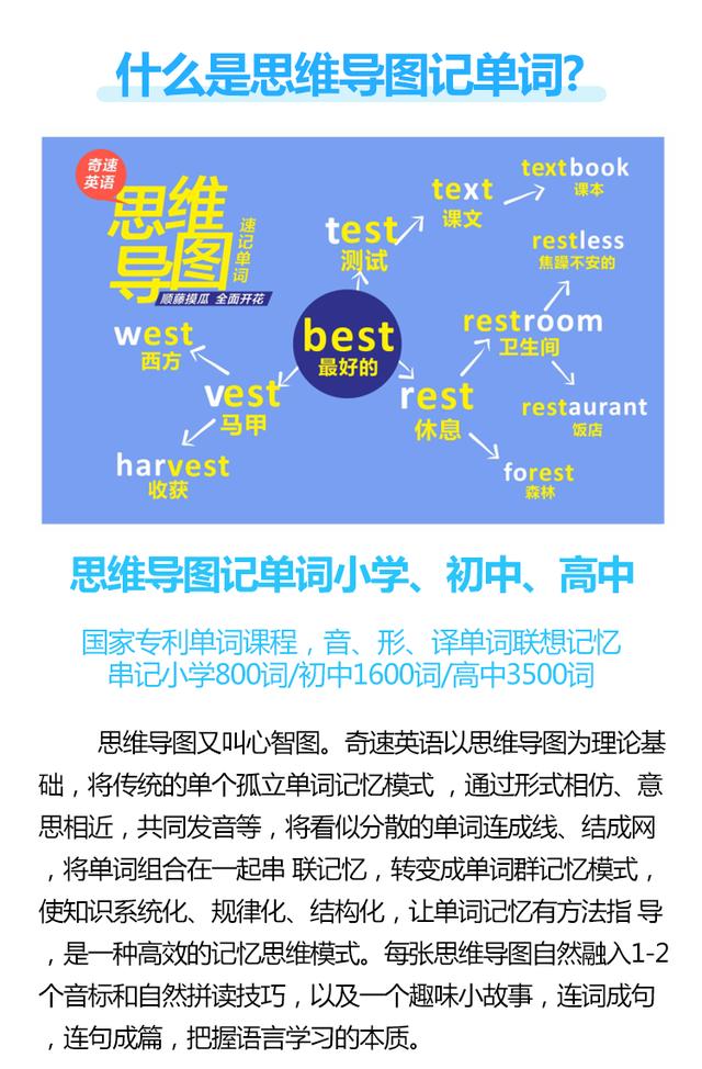 奇速英语喜迎开学季,诚邀全国各地小初高学员加入【思维导图记单词4节速记200个单词】线上直播课。快速地帮孩子打破英语记单词瓶颈,实现英语水平质的飞跃!