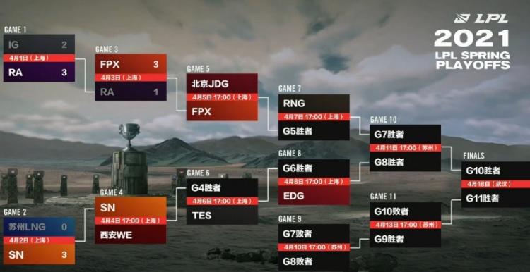4月4日讯 4月2日讯 LPL春季赛季后赛第三场比赛,SN3-0横扫WE,成功晋级第三轮,将于4月6日迎战TES。