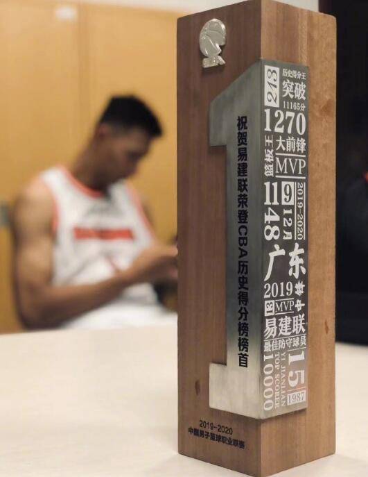 这场比赛,阿联依旧打出全面的表现,11次出手命中7球,三分2中1、罚球6中5,攻下20分6篮板2助攻4抢断3盖帽。赛后,CBA官方给阿联送上一个奖杯,上面有“祝贺易建联荣登CBA历史得分榜榜首”、“MVP”和“篮板王”等字眼。
