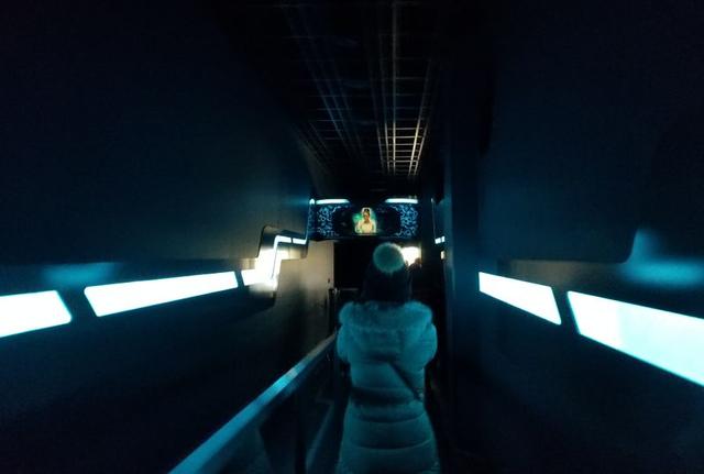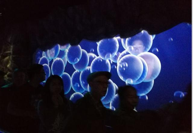 以珠海长隆海洋公园的海底互动船为例,经历了从地上往地下曲曲折折的排队区,游客会看到一些类似于游戏机显示屏的机器,好奇者操作后继续往里走,峰回路转环境渐暗,忽见眼前的大屏幕上出现一串带着人脸的气泡,看到自己的游客往往一阵兴奋雀跃。当然,由于有些显示屏操纵杆失灵,不少游客也为自己错过了互动而感到可惜。