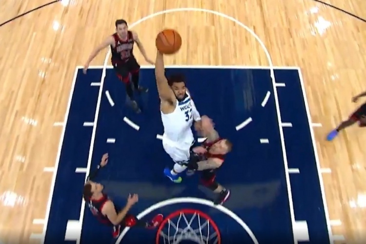 比赛首节,唐斯在一次进攻中接球,顺势用假动作虚晃一枪,将上来补防的武切维奇晃倒,随后唐斯持球冲杀内线,上演单手劈扣。