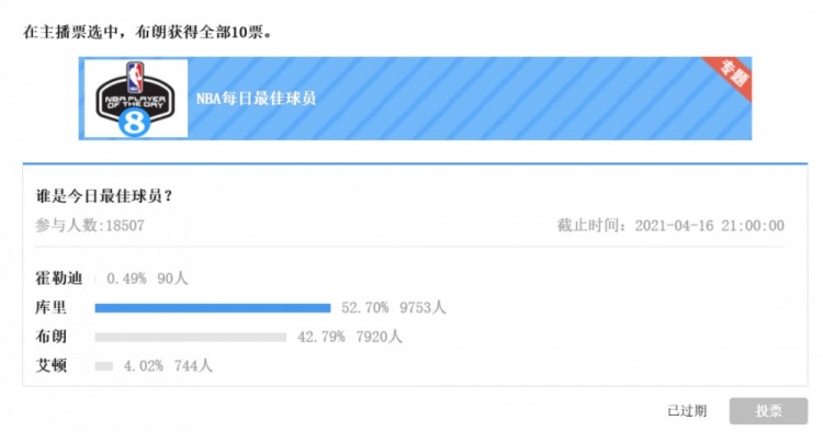在主播票选中,布朗获得全部10票。
