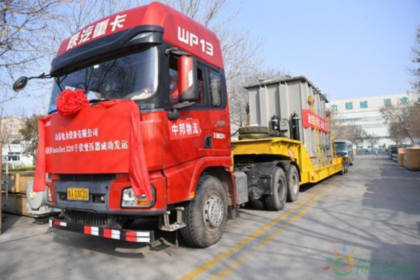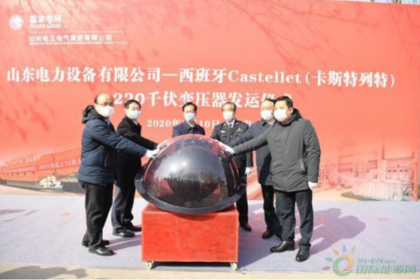 3月10日,济南市市中区山东电力设备厂主路上,迎着清晨的曙光,一行车队格外显眼——最前方一辆警车,后面是一辆大型红色货运卡车,上面载有一台70吨的220千伏变压器,即将运往天津港,出海到西班牙Castellet(卡斯特列特)变电站。
