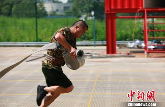 在完成晨练、器械准备后,一场体能测试正在拉开。该大队消防员许伟民率先跑了起来,这已经是他在宁波机场做消防员的第十一个年头。
