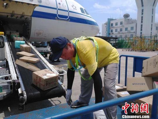 中新网宁波8月6日电(记者 林波)弯腰、搬起、放下、码好……8月6日,随着航班MU5243的飞抵,此时的飞机腹舱就像一个闷热的“大蒸笼”,温度比室外还高,因为高度有限,宁波栎社国际机场(以下简称“宁波机场”)货站装卸员陈立才只能猫腰躬身进去搬运行李。