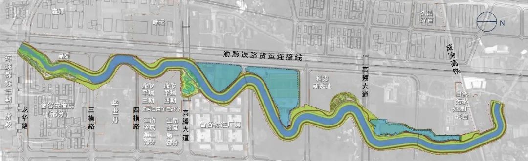 示范段河道不仅承载着科学城未来的水道排水重任,而且还承担着生态园林城市发展的重任,重庆高新区通过系统整治建设,将其建设成为集绿色、景观、人文、滨水、生态廊道一体的国际水岸生态体验带,将达到提升城市品位,辐射并拉动城市开发建设的目标。