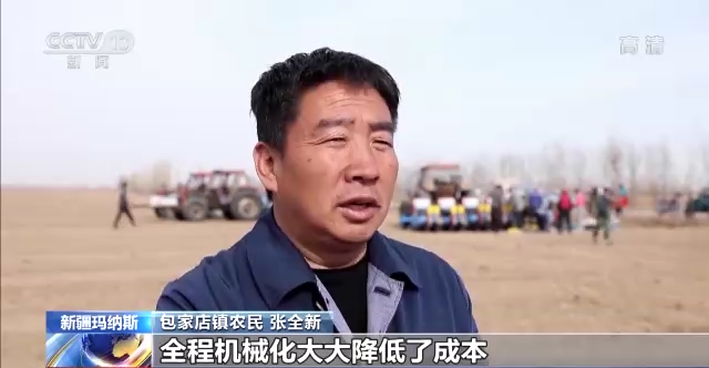 包家店镇农民张全新:全程机械化大大地降低了成本,每亩地降低成本200元,我种植300亩地,要降低成本6万元左右。产量由原先的400多公斤,现在提高到500多公斤,每亩地可以增加效益800多元。