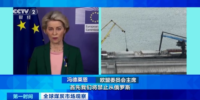 欧盟委员会主席冯德莱恩:我们提议进一步采取制裁措施。首先,我们将禁止从俄罗斯进口价值40亿欧元的煤炭。