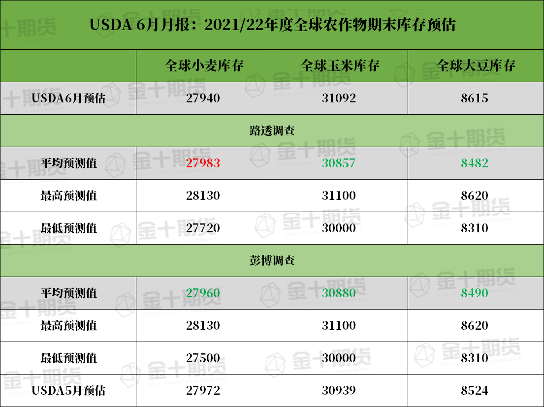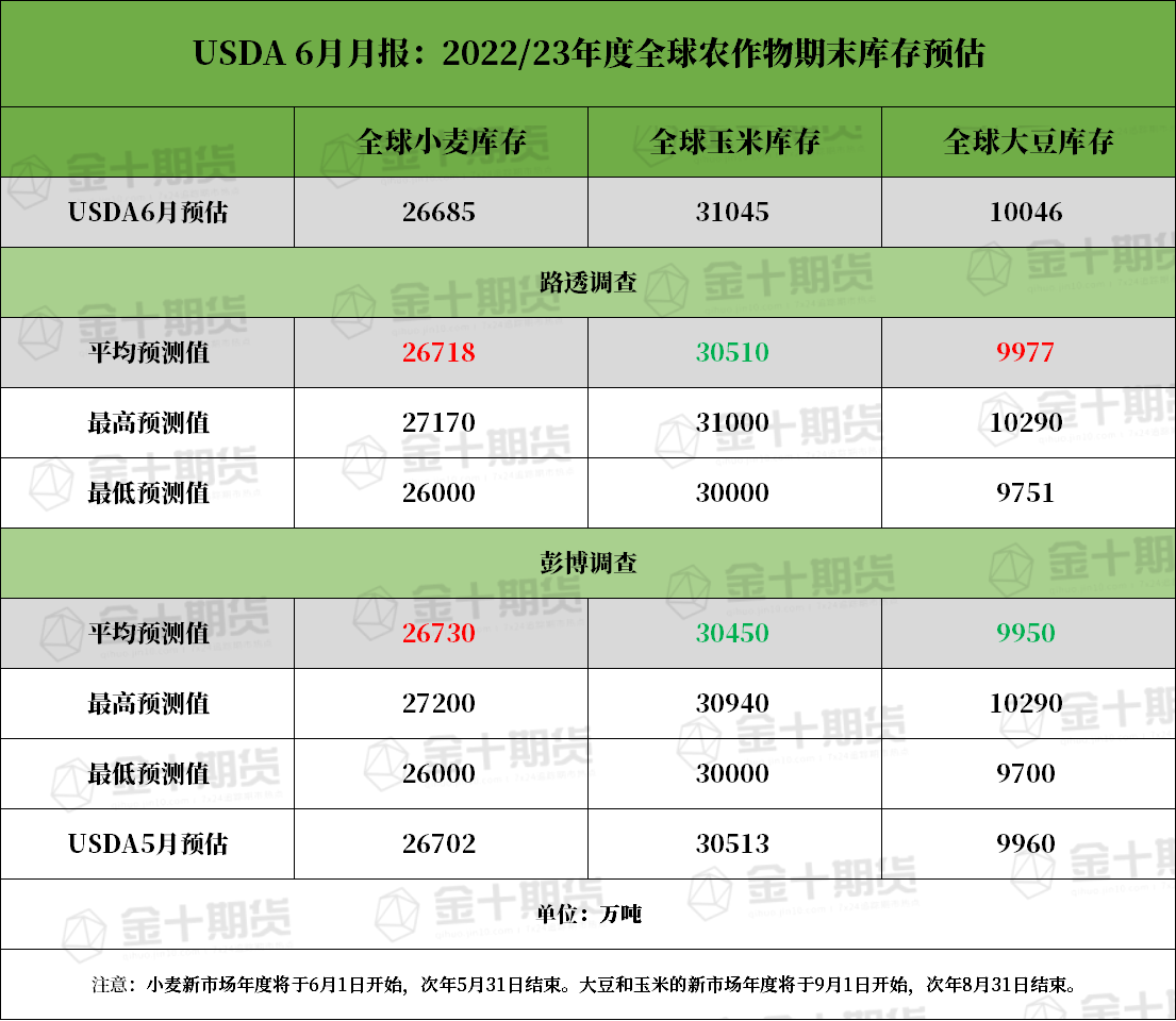 美国农业部6月供需报告:全球大豆、玉米、小麦期末库存