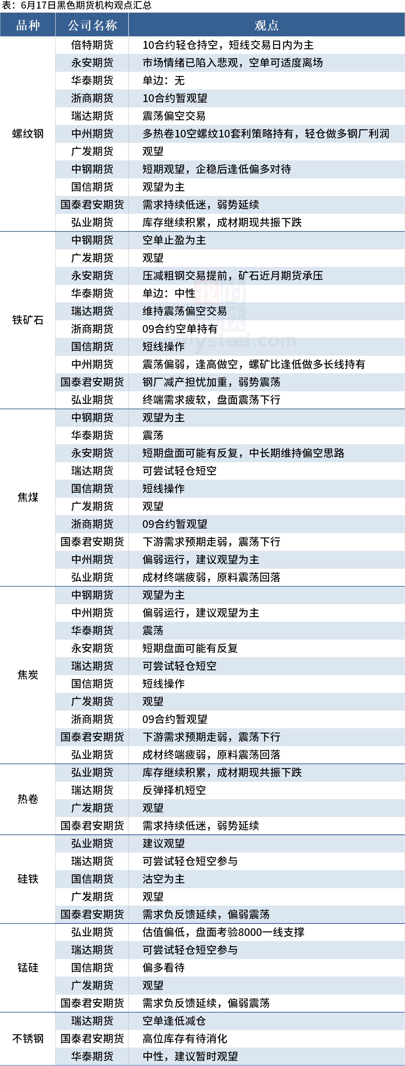 一图汇总黑色系期货的机构观点,仅供参考,不构成投资建议>>