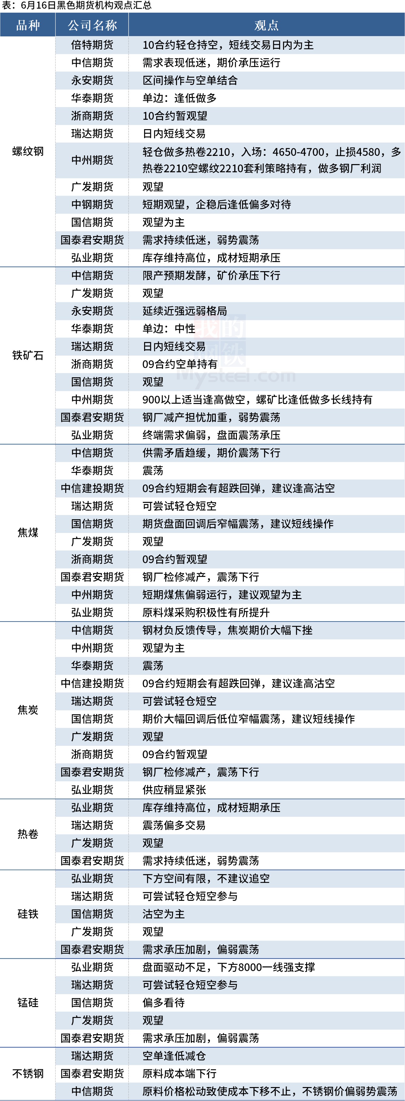 一图汇总黑色系期货的机构观点,仅供参考,不构成投资建议>>