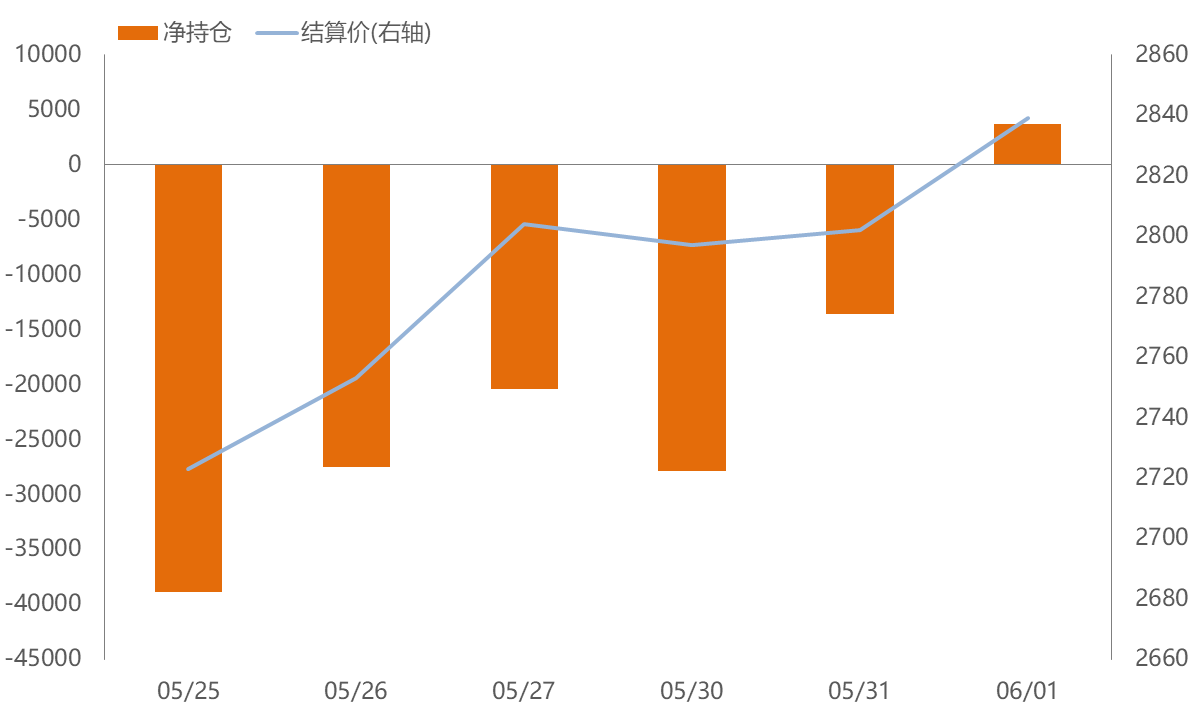 中信期货多、空持仓均位于第一,且4月21日至5月31日持有净空单,而今日转变为持有净多单。具体看其近期(5.25-6.1)净持仓与价格间存在正相关性。