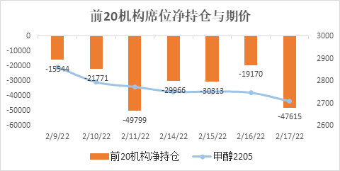 值得一提的是,海通席位今日净空单总量逼近1万手。通过查询海通席位在甲醇2205合约上的建仓过程可知,海通席位净持仓变化情况与甲醇主力期价近期波动相关性较高,该席位持仓结构今日多翻空。