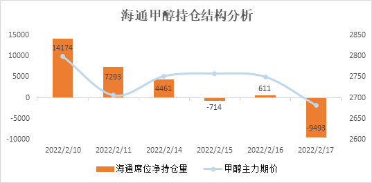 (海通席位甲醇2205合约近6个交易日持仓结构分析;来源:东方财富网)