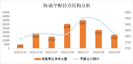 (海通席位甲醇2205合约近7个交易日持仓结构分析;来源:东方财富网)