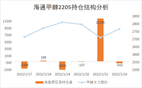 (海通席位甲醇2205合约近6个交易日持仓结构分析;来源:东方财富网)