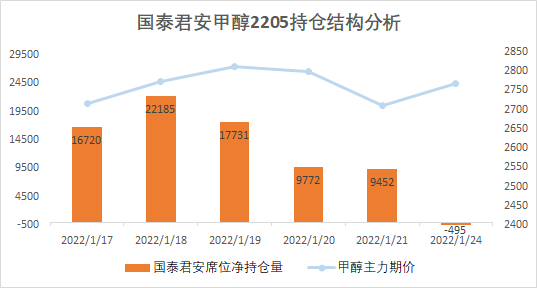 (国泰君安席位甲醇2205合约近6个交易日持仓结构分析;来源:东方财富网)