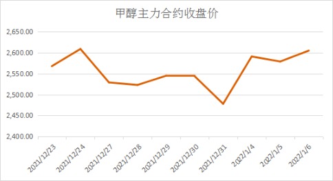 今日(1月6日)截至收盘,甲醇主力2205合约收于2605元/吨,涨幅1.01%,在12月23日-1月6日期间收盘价在2487元/吨-2609元/吨区间波动,最大波幅为4.9%。