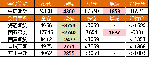 就空单而言,有3个席位减仓超2千手,有2个席位增仓超2千手,且均持有净空单。