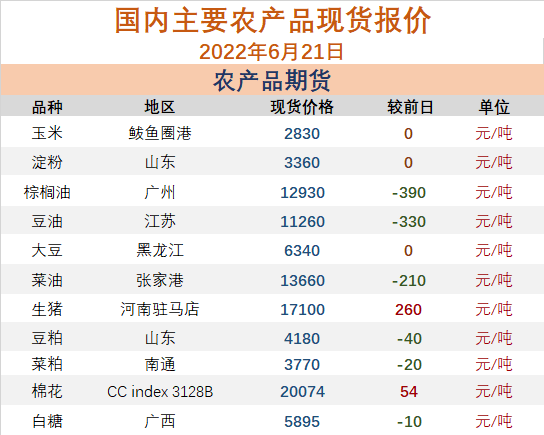 6月22日国内农产品主流地区现货报价