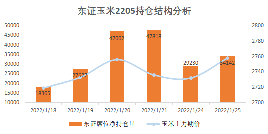 (东证席位玉米2205合约近6个交易日持仓结构分析;来源:东方财富网)