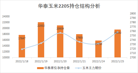 (华泰席位玉米2205合约近6个交易日持仓结构分析;来源:东方财富网)