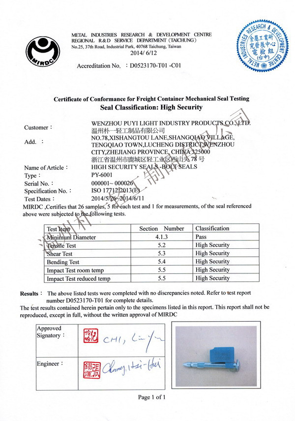 | 产品描述 | •符合**新ISO/PAS17712:2013标准要求 •铁杆直径8mm,铁套直径18mm •铁套外包ABS注塑 •铁杆、 铁套均用高质量的低碳钢 •**先进的“防转”功能,保证锁紧后不会被高速旋转拉出 •公司名称或LOGO和序列号激光在封条上 •可印条形码 •可提供多种颜色•分体式设计,可提供直线型和弯形两种铁杆 |