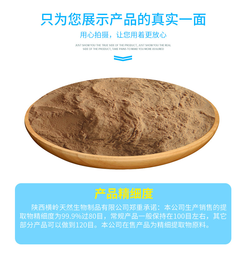 产品规格:80%, 98% HPLC 【贮存条件】密封,避光,防潮 【保 质 期】2年 山茶籽是油茶籽的别名,油茶籽学名:Camellia seed,是油茶树的果实。油茶树是我国主要的木本油料树,属山茶科山茶属常绿小乔木。树高3—6米,胸径可达24—30厘米,树皮光滑为灰褐色。油茶树单叶互生、花为两性白色,10月开花后直到次年10月间果实方能成熟,因此,油茶树会有罕见的花果同株现象。果实为蒴果,多为椭圆形、有细毛。种子多为黄褐色,有光泽,三角状。 油茶树长在深山,常青长寿,树龄可达200年以上 【【包装方式】:1KG/铝箔袋 25KG/纸板桶 (内置双层防潮塑料袋)或者根据客户需求进行包装 【储存方式】:密封置于阴凉干燥处 【储存期限】:24月 【开票说明】:网上报价均不含税,如需含税,请联系客服,谢谢