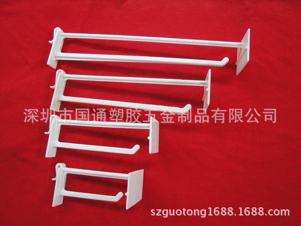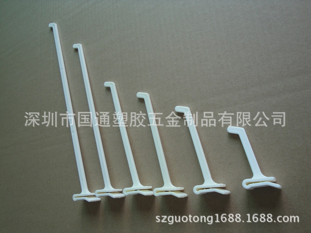 国通塑胶,生产各种塑料提手、塑料挂钩、超市挂钩、超市挂条、PP提条、塑胶提手、塑胶挂钩、饮料提手;以“展示用品,包装制品配件”主要产品。专注塑料、五金制品加工, 经验丰富、技术过硬、质量保证、价格合理、供货及时、顾客至上,本厂具有CAD设计能力,自制模具、制模快捷、便宜。 可根据客户要求定做各种国际通用颜色。欢迎来样板共同开发合作!