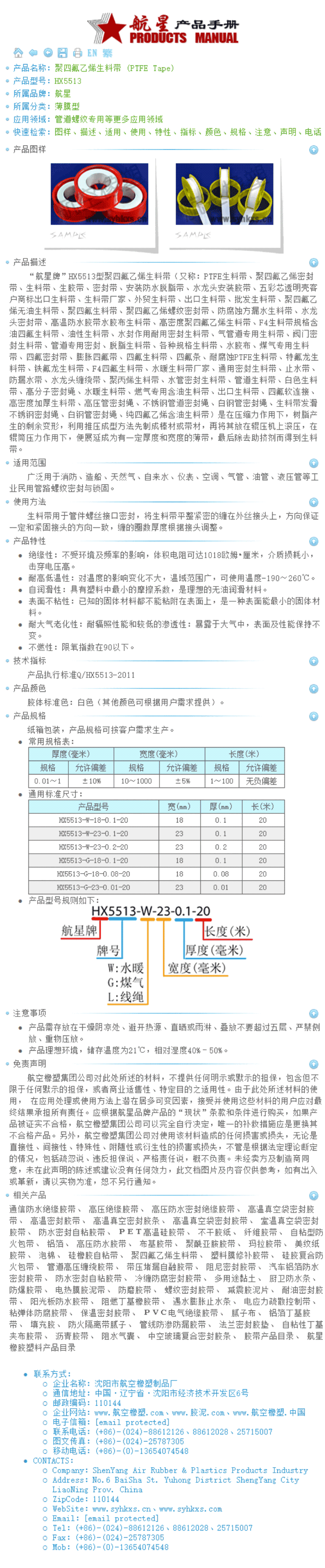 rHX5513 聚四氟乙烯生料带 (管道螺纹专用)