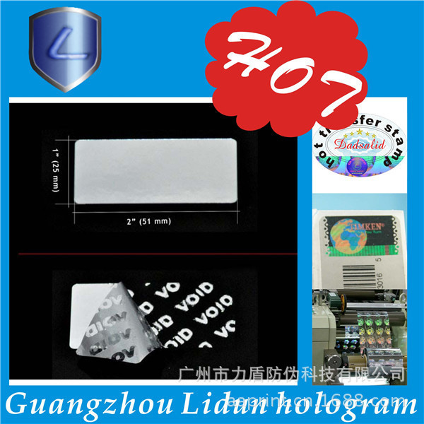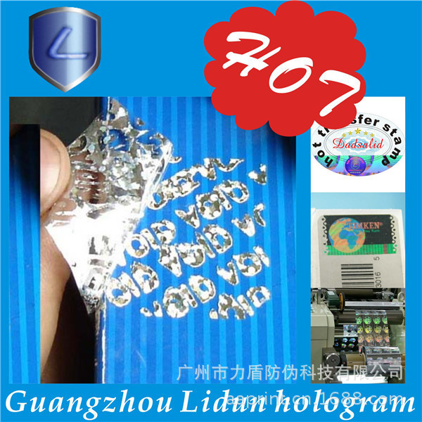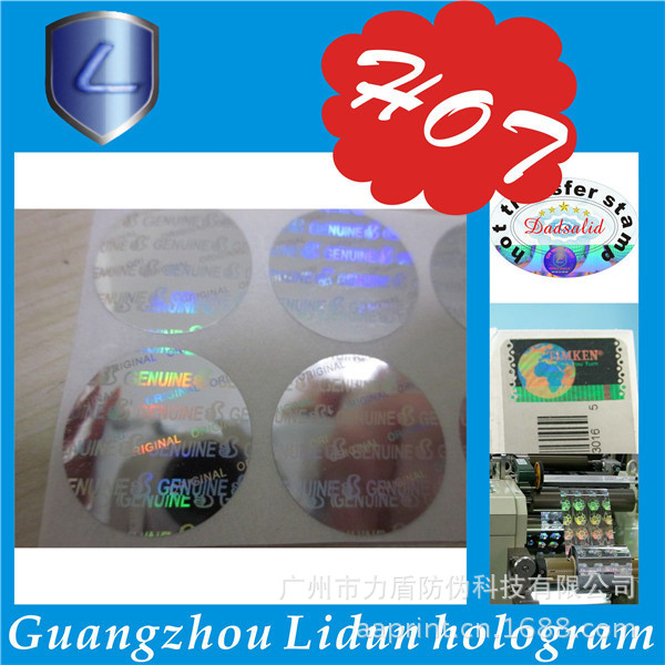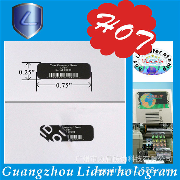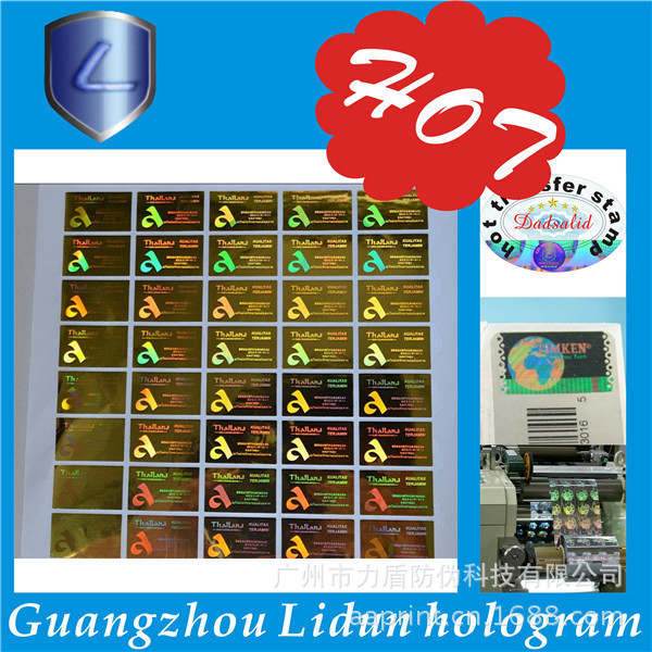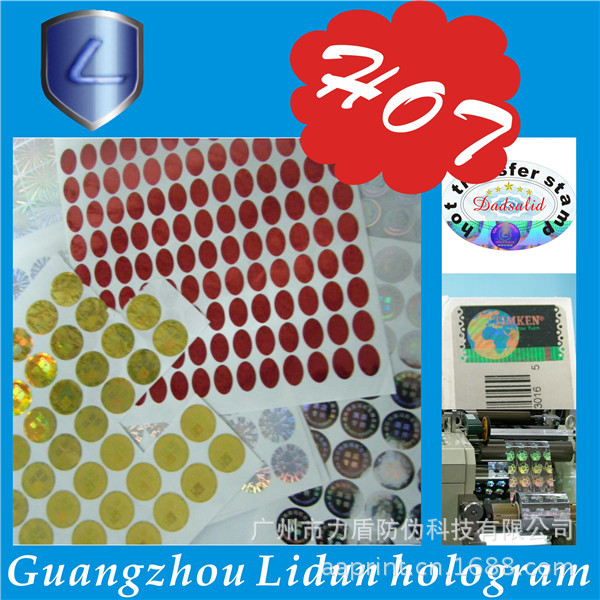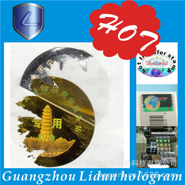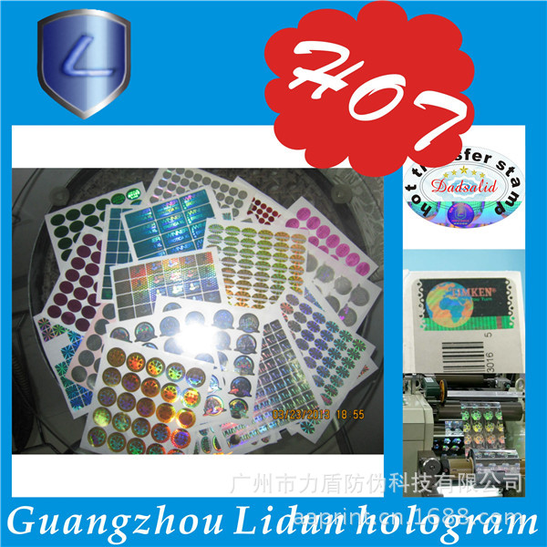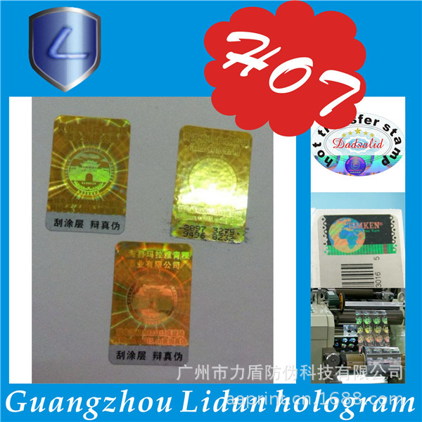 广州市力盾防伪科技有限公司成立于1998年,集研究、开发、应用和发展为一体的的高新技术企业。经营范围:数码防伪、激光防伪、加密防伪、激光微缩字、解码光刻激光标防伪、激光标打流水号、光刻水洗电化铝防伪、荧光防伪、光学变色防伪、变色龙、温变(摸变)防伪、滴水消失防伪、版纹变字防伪、易碎纸防伪标、烫金激光防伪刮开式、电化铝防伪膜、防伪纸张、水印防伪、纹理防伪、纸张穿线防伪定做、阴阳膜防伪、揭开(撕后)留字、核防伪、防伪票证、有价票证、无碳纸票据、磁票、不干胶、证照、单据等各类防伪。高难防伪我开发,凝难印刷我专业。固定电话查询、800免费电话查询、手机短信查询、网络查询由您指定。 力盾公司可根据您的要求,为您的产品量身定制各类防伪标识,如防伪标签、标贴、防伪合格证、质量卡、有奖促销奖券等等,为贵单位的产品防伪、品牌保护助一臂之力;我公司有专业的设计室,可免费为您提供专业、细致的服务。通过购买力盾防伪标识,贵单位无需其他投入即可实现产品防伪、品牌保护,力盾确保相关防伪产品在生产和流通过程中的安全保密。