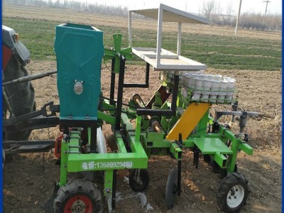 构树栽苗机 构树移栽机 树苗移栽机 可定做 株距行距可调 移栽机 秧苗移栽机 秧苗插秧机 秧苗种植机 秧苗栽苗机 构树移栽机 构树栽苗机 构树插秧机 构树种植机 构树移植机 构树移栽机价格 构树移栽机厂家 浇水起垄施肥一体机 一、适用范围 2ZQ型秧苗移栽机,主要适用于钵体植物苗、蔬菜苗瓜果苗和块状种子(如土豆、芋头)等农作物的栽种,特别是对烟苗、茄子甜菜、辣椒、西红柿、哈密瓜、菜花、莴笋、卷心菜、黄瓜、西瓜、玉米苗、红薯苗、甜叶菊、菊花和棉花等作物的栽植作业。既适应大面积多行农厂栽植,又适合丘岭,大棚内秧苗的移栽。具有技术先进、性能可靠,操作维护简便,效率高,能耗低、寿命长等显著行点,本移栽机作业时必须在旋耕耙细后的土壤田内使用,否则将损坏机器 。 二、技术性能与特点 1、技术先进,移栽质量高 该机采用了偏心轮盘连杆机构和双凸轮板结构,同时联动控制移栽环节,利用双轮盘旋压,栽苗器钳嘴向两侧方向开穴,栽苗,覆土轮封埯等功能的实现,确保了无漏栽苗现象发生,保证了秧苗移栽机质量成活率,解决了人工移栽过程中的深浅不一,株距不均,移栽效率低等缺点。 2、结构新颖,适用范围广 该机采用双盘旋压,偏心盘和多连杆联动带动栽苗移植为一体的科学先进的系统。具有整机结构紧凑,性能稳定,配合优良,一机多用等特点。根据配备的牵引动力大小和在牵引架上安装栽种总成的个数可实现1---4行的栽植作业,既能实现大面积平原农场高效率栽植,也能解决大棚、丘岭钵体秧苗栽植作业。 3、性能可靠、造作灵活、易调整 该机采用链轮、链条等转动,传动比可靠,移栽株距准确。 (1) 通过调整栽苗器的数量和更换链轮,可实现18-78厘米的株距。 (2) 调整苗深调节器上的调整丝杠可实现5-13厘米的栽植深度。 (3) 转动覆土调整器上的手柄增减封埯覆土的厚度。 4、工作可靠、坚固耐用、使用寿命长 该机采用双轮盘、双联动轴、双凸轮板控制开口,双齿形钳嘴开口板,当一侧开口失灵,另一侧仍能利用双齿形开合钳嘴板,保证了工作可靠性。特别是移苗器遇到硬土块时,减缓冲器立刻发挥作用,防止移栽机的损坏,使移栽机坚固耐用,使用寿命长。 5、减轻劳动强度,节省人工费用,效率高,成品低 长期以来,我国秧苗移栽一直是人工移植方式,劳动强大,移栽株距不均匀,移栽深度不一,造成移栽质量差,成活率低,效率低。而用该移栽机完全可以实现生产效率高,劳动强度低,移栽深度和行距可以方便的进行调整,并且深浅株距一致。大大提高了秧苗移栽质量。该移栽机每小时可移栽6000-9600株,每天可实现栽植25-35亩以上(单机头计算)。移栽费用大大降低,作物生长成熟期一致,便于田间管理,产量增加,经济效益明显提高。 地址:山东乐陵开元大街西首路北 电话:19953401667