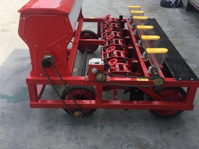 【适应作物】:谷子、芝麻、胡芥、油菜、糜子(黍)、油籽、菜籽、胡麻、辣椒、甜菜、白萝卜、水萝卜、胡萝卜、菠菜、芜菁(蔓菁)、韭菜、大葱、洋葱、白菜、芹菜、芥菜、麻类、青笋、结球甘蓝、芦笋、落葵、生菜、雪里红、西兰花等各种花卉、苜蓿牧草、草坪、粮油、中药材、蔬菜等小颗粒种子的免间苗、省种、壮苗、增产、高效的精密播种。 另外,我们可以为客户“量身定做” 1—6行不等的大、中、小型等多行播种机。或定制高粱类中、小颗粒种子的专用播种机。其原理是:在通过本机排种控制系统对下种数量的精密控制,播种时按量定距,将种子相对有规律的单粒排放在出苗环境较好的土层。使出苗株距自然合理,减省了人工蹲下间苗的劳苦中解脱 三、性能指标及使用方法: “省工、省种、省时、省力、省墒、保墒、节肥、省水、苗匀、苗齐、苗全、苗壮**、增产”于一体。是目前全世界进的谷物、蔬菜、苜蓿牧草、中药材、草坪等小粒种子“出苗质量”的播种机。 有道是:小米价格高,间苗苦难熬,拥有播种机,不用愁间苗。