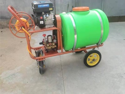 高压动力打药车特点:启动方便,结构紧凑,运输便利,射程远,雾化效果好,作业范围大,特有回液搅拌器,喷施效果佳,维护简便,使用寿命长。 产品特点: 产品功能完善、前轮真空胎,后轮带刹车,工作效率高、推拉行走自如; 功率大,自动混药,雾化好,射程远(高),操作简便,维修方便; 适用范围: 大田、果园、花圃苗木、蔬菜大棚、茶园、草坪等喷药防除治病虫害以及抽水和喷灌等; 公共场所、垃圾场地、以及自然灾害过后的大面积杀菌消毒、防疫; 清洗车辆、场地等方面作业。 100升、200升、300升、400升均有现货